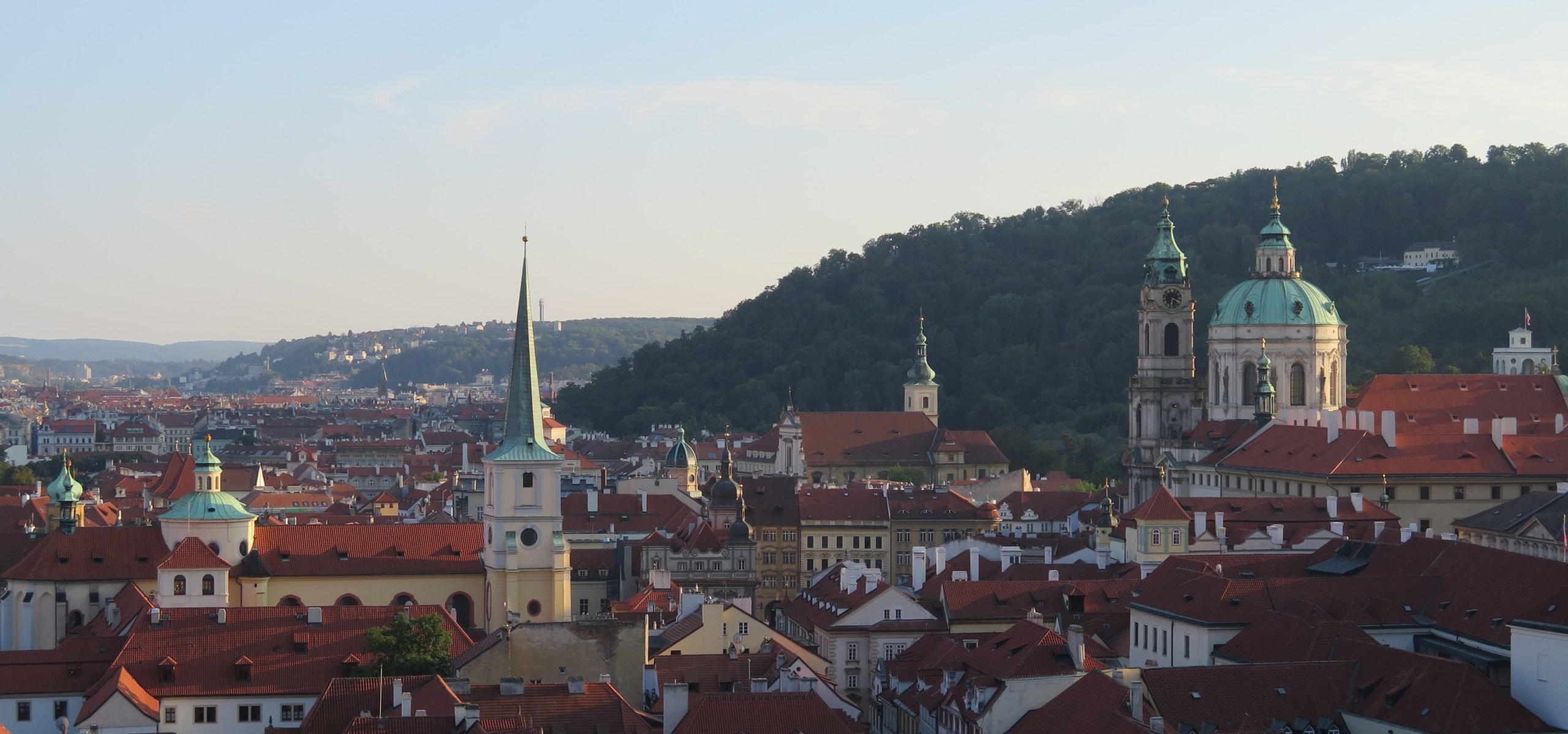 Colleen and I walking through Prague’s Old Town during sunset.