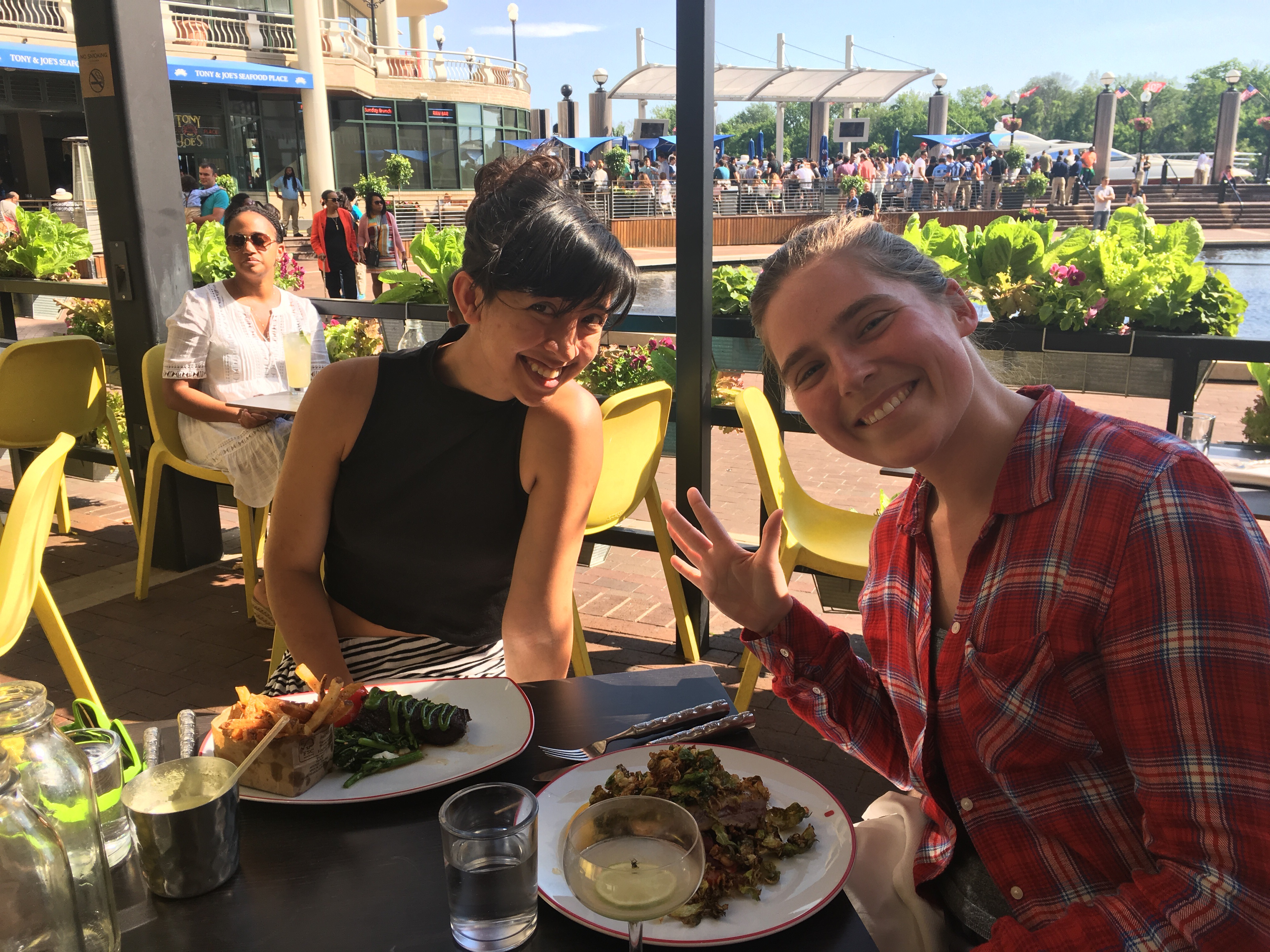 After a day of memorials, Colleen and I met one of Colleen’s friends in the historic neighborhood called Georgetown for dinner. Colleen told me it was a restaurant that she always wanted to try, because not only does it get great reviews for its food, but it is situated just off the Potomac River. The wait was 1.5 hours, so we took that time to explore the old colonial homes that border the cobblestone streets. Some of Washington D.C.’s oldest buildings reside in Georgetown; including The Old Stone House (built in 1765).