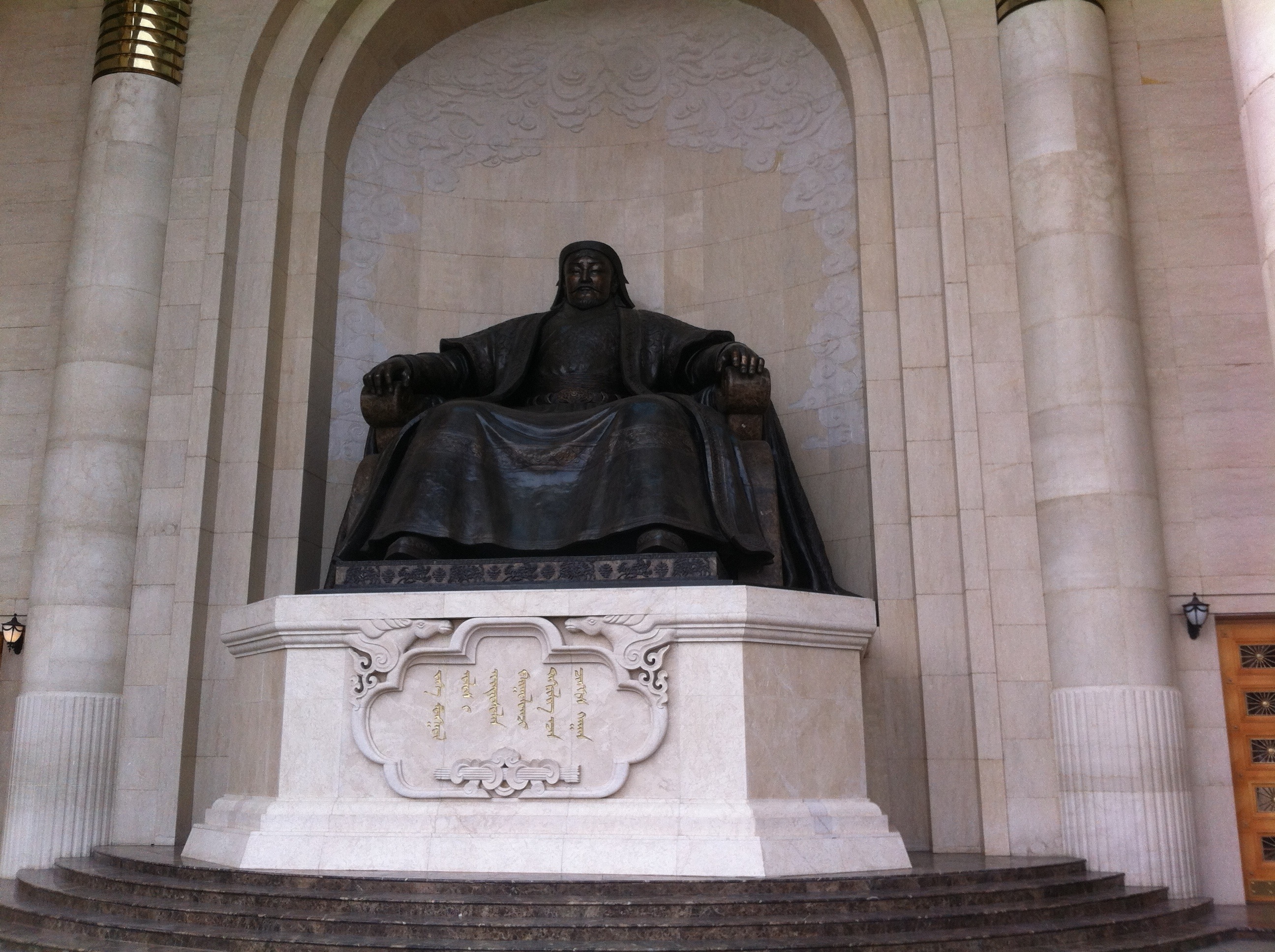 After the big monastery, Andres, Ben, and I walked around and found some other temples. They were smaller and more quiet. We also walked to the town center and I got to see the Chinggis Khaan statue in Sukhbaatar Square. During my first day, I mostly soaked up my surroundings and tried to get a feel for the UB vibe. What I gathered is that UB is a mixture of Russia and China. In downtown UB, most of the buildings are of Russian communist architecture, which means there is a lot of concrete blocks and white square buildings. But, the monasteries have the Asian tile technique as well. All in all, the thing that makes Mongolia, “Mongolia” are the gers and horses. A ger is a circular yurt that traditional Mongolian families live in. Even in UB, I saw many gers, especially on the outskirts. Also, there are so many horses here, maybe not in downtown UB, but I did see horses in the outskirts of town (and on my recent travels, which I’ll explain later.)