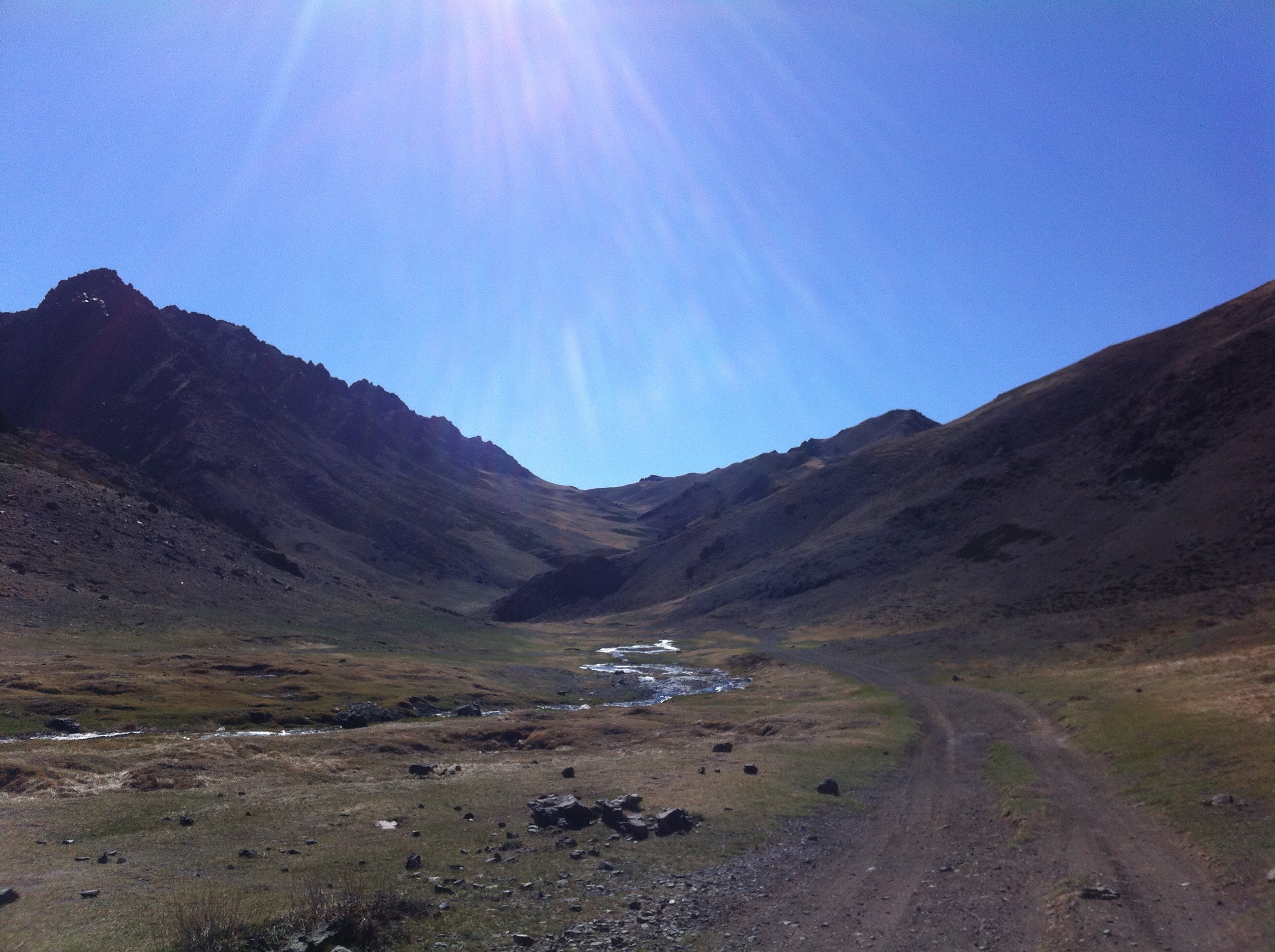 When we reached the trail head, we all got out and found ourselves surrounded by hills and mountains. Khulaan told us to follow her and like good children we did. It felt good to stretch out my legs after 3 days of long car rides. At first we were in a valley of grass and walked along a dirt road, I spent most of the time with my head cranked upwards. The mountains were beautiful and the rock faces made me want to go rock climbing again! Khulaan lead us to a stream that had a trail and this trail lead us deeper into the canyon. By this time, I separated myself from the boys and Khulaan and was able to appreciate all the sounds. The stream was calming and the wind was whistling. The stream got smaller and smaller, until it was completely covered in ice. I learned quickly why this place is called Ice Valley.