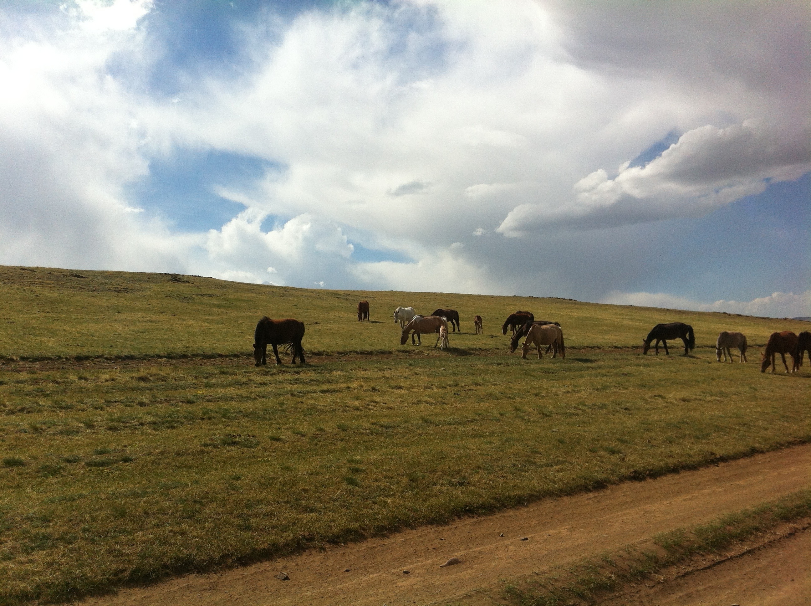 I made it to the top of the mountain with time to spare. I found a nice flat rock and sat, watching the sun rise above the mountains to the East. Before my descent, I watched the locals begin their daily lives. I could see men letting their cows graze, I saw men take their horses out to the fields, and I also saw some children playing near their ger homes. They were only black dots in the distance, but I was happy to be apart of their morning.