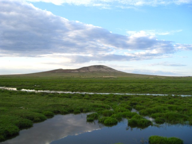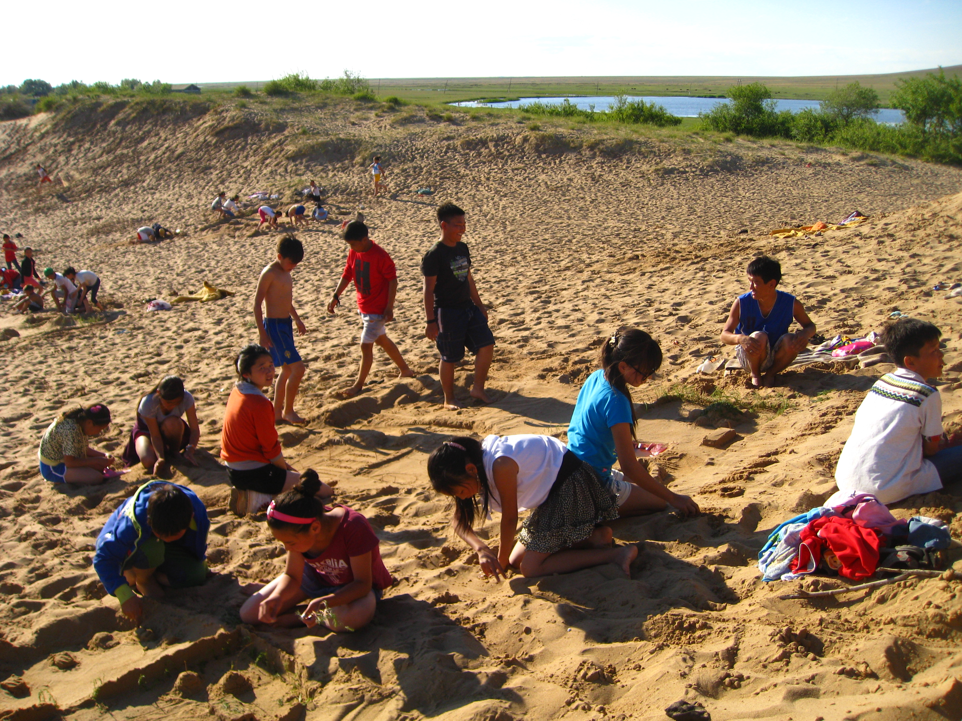 After 5 hours, we made it to Dariganga and to the camp. I was very impressed with the camp layout, there was lots of grass and the holy mountain can be seen from any angle. Horses and cows graze in the distance, and there is a lake that has swans. The camp itself was very rundown, but it had character that made up for the bat infested rooms, broken windows, and leaky ceilings. There was one night where 3 bats were flying around in our bedroom and I tried catching them with my laundry bag. I failed in this endeavor, but luckily an accountant (also professional bat catcher) caught 2 bats with elongated tongs and released them outside. But, enough about the negatives, how about some positives?So pretty right? This is the holy mountain, Altan Ovoo. Those are horses grazing in the distance.