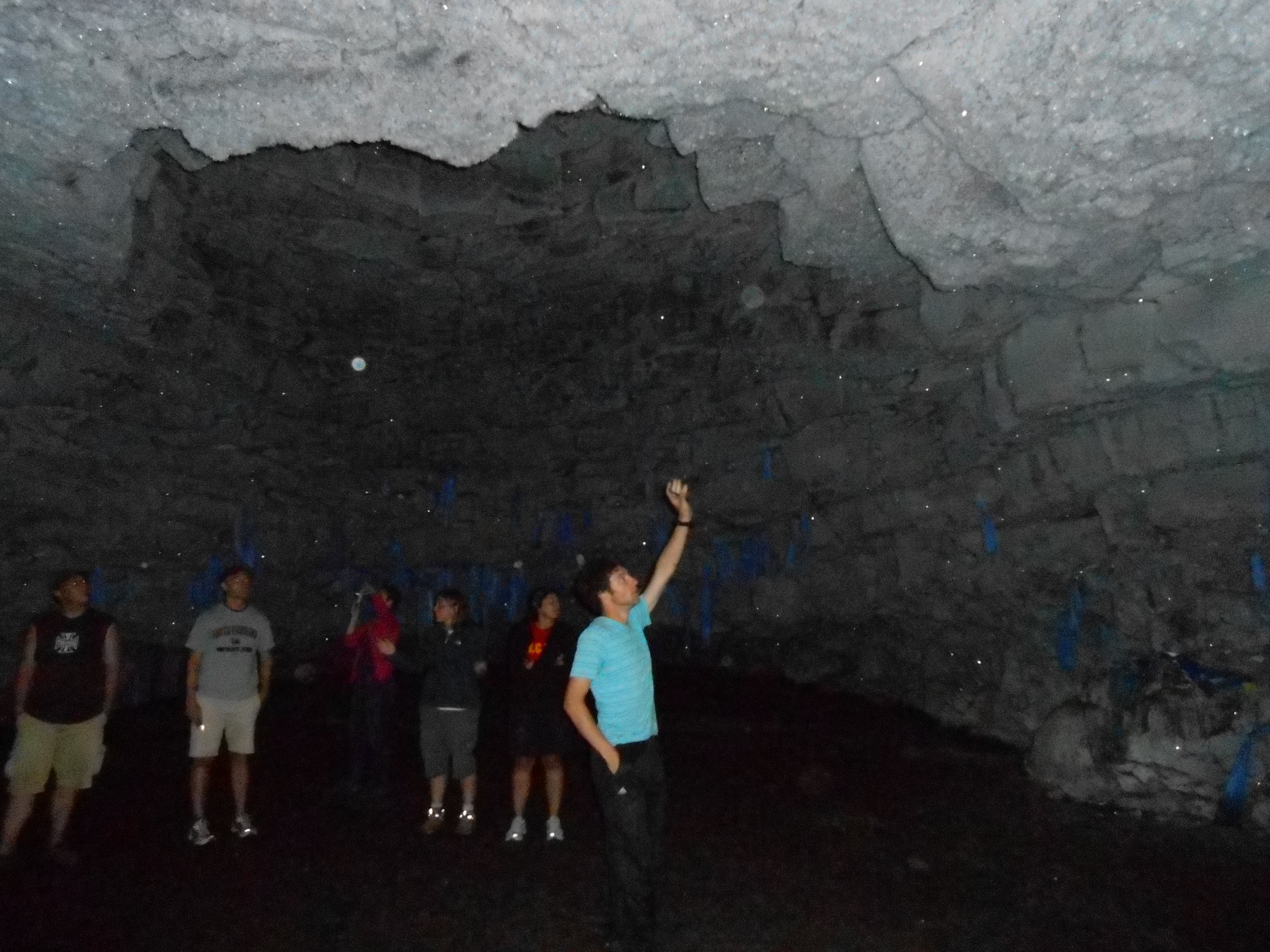 Well, we entered one of Toro Band’s caves. The entrance was blocked once upon a time, so it was a bit of a squeeze to get inside. After the entrance, the tunnel was very low to the ground. We had to crouch and avoid the stalagmites and stalactites. It was also very cold. There was ice everywhere. After crawling for 15-20 feet, the cave began to get bigger and bigger, until we were in this giant circular room. There were decorations everywhere and the rock formations were stellar. The cave ceiling must have been at least 15 feet tall. I’ve been in caves before, but nothing like this.