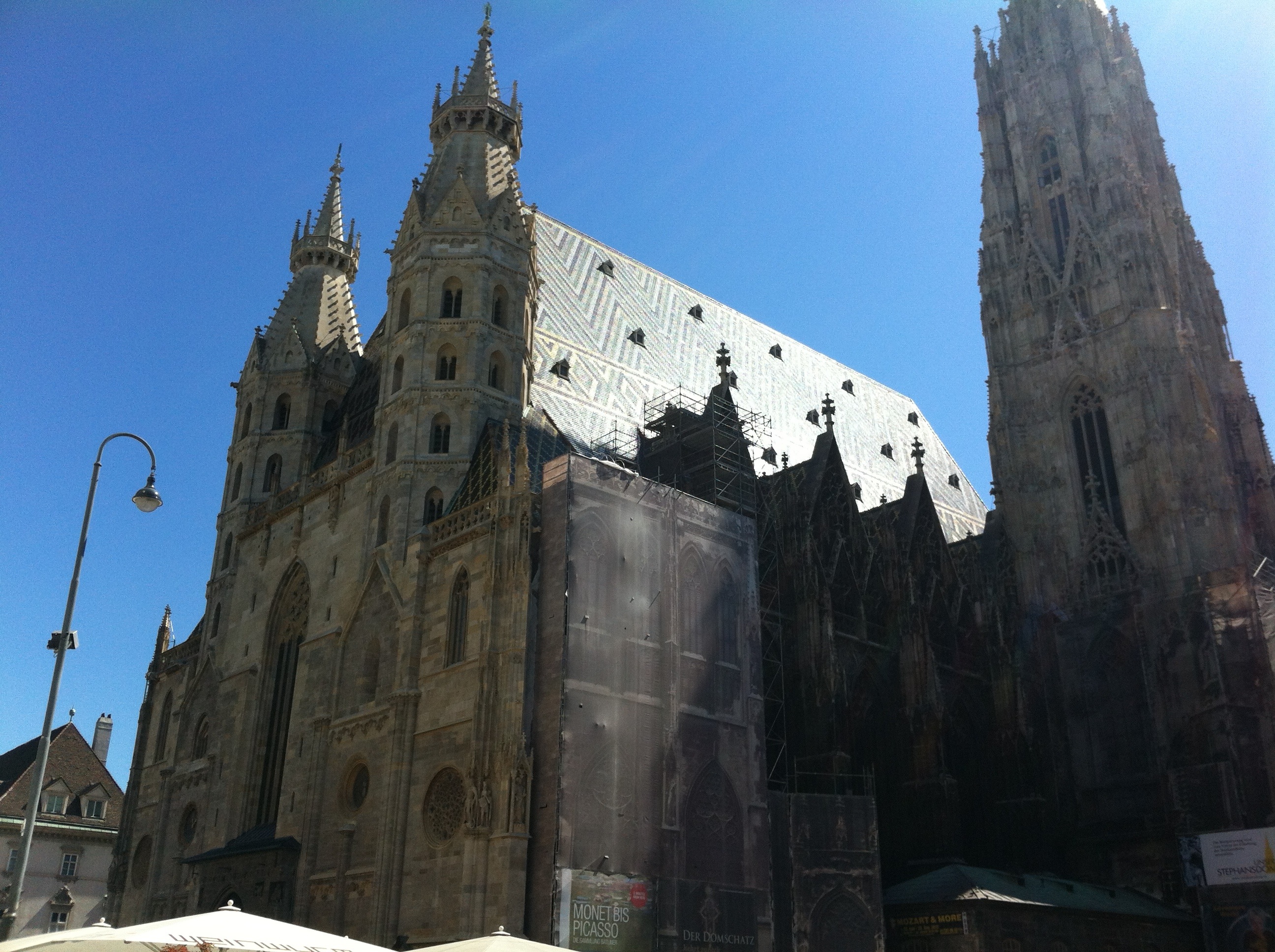 The next day, Dad, Jamie, and I walked to Old Town and visited the famous Saint Stephen’s Cathedral. On the way, we appreciated the beautiful architecture, especially the historical museum buildings and palace. The old buildings have now been converted to fancy stores, such as Versace and Banana Republic, but the history is still there. We found the cathedral and walked inside to find a catacombs tour starting in 15 minutes. Jamie and I knew we had to do it, when else would we have the opportunity to go beneath a Cathedral?