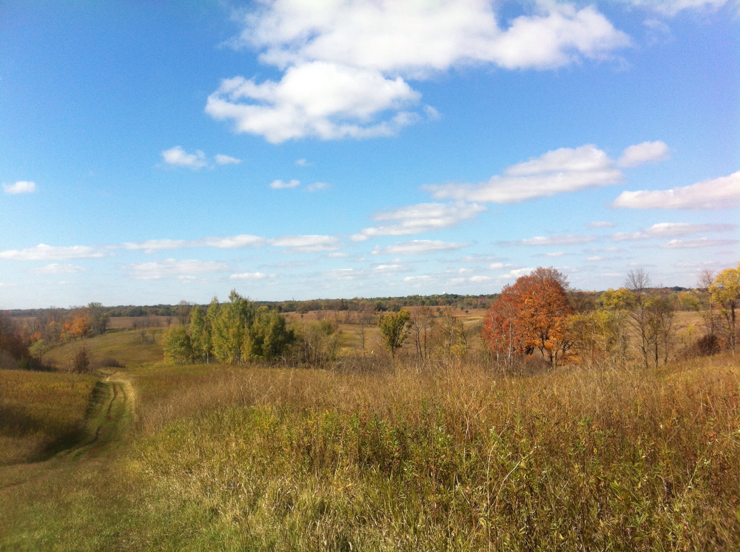 I could talk even more about the bike scene in Minneapolis, but instead I’ll share with you some of my other Fall highlights. In previous posts, I’ve talked about one of my other favorite hobbies: hiking. There are many great hiking trails near the Twin Cities and one of my favorites during the Fall season is Crow-Hassan State Park. This park is mainly prairie and maple forest. During the Fall, the maple leaves turn into a vibrant yellow. Here are some shots of my hike.