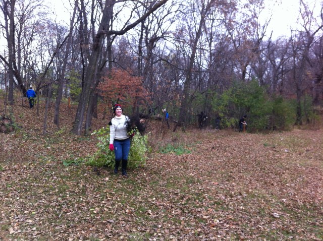 Buckthorn is very invasive in Minnesota, so I spent a chilly fall afternoon picking it with a group of people.