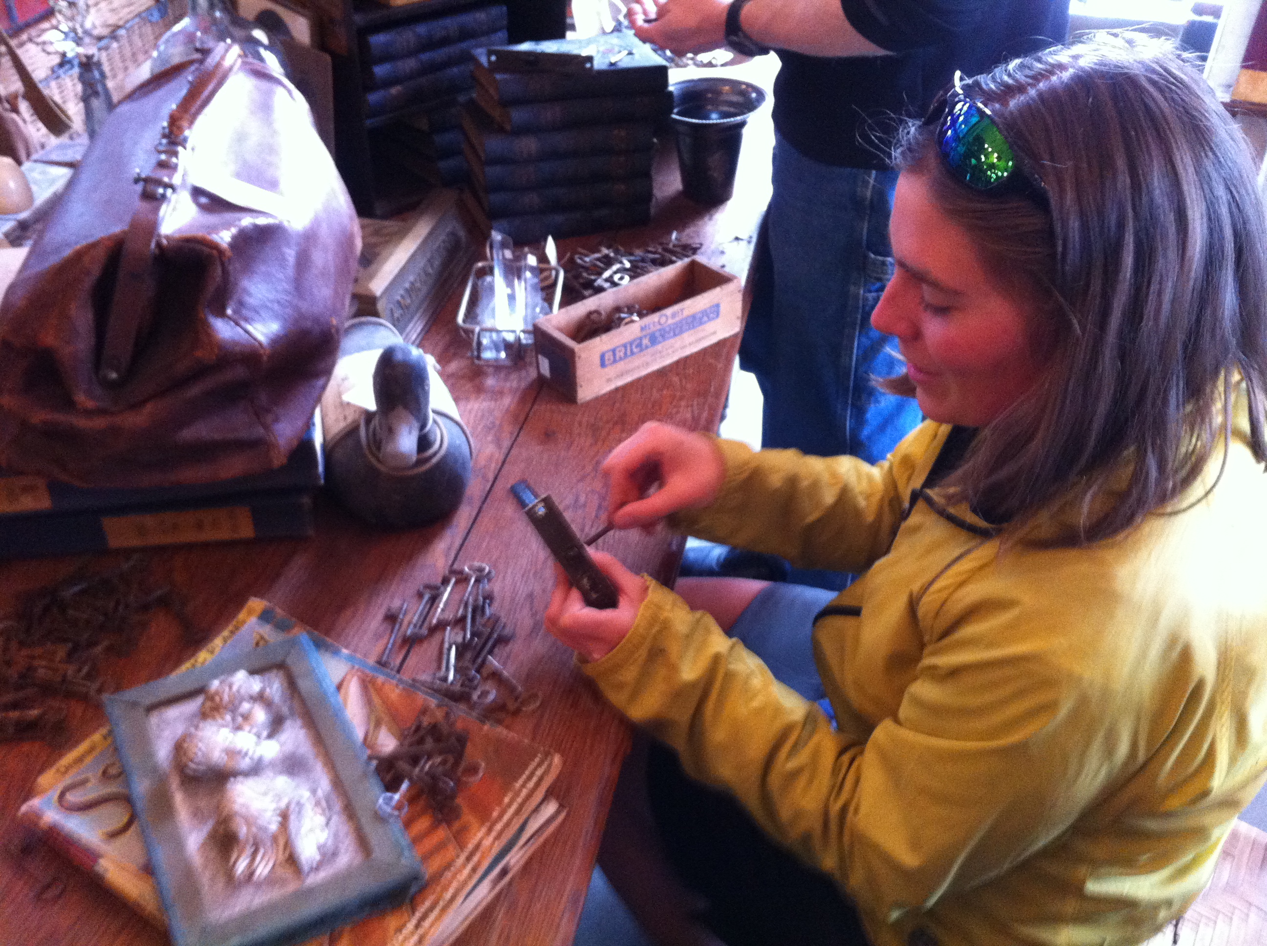 Here’s me after testing key number 50-70. Whew… lots of keys! In the end, we found a key for one door, but not the other. I’ll have to go on a quest next week to find the missing key.