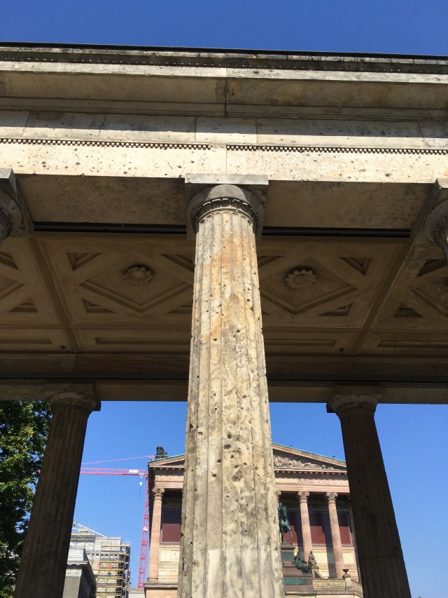 While walking through the museum district, what struck me first were the visible bullet and shrapnel scars strewn across the museum buildings and pillars in the area. Irina told Colleen and I that after the war, Berlin did not have the funds to fix the scars, so they have been left since. It was easy to imagine that there must’ve been heavy gunfire between the allies and nazis in this area during WW2, especially since it wasn’t far from the parliament building (Hitler’s headquarters).
