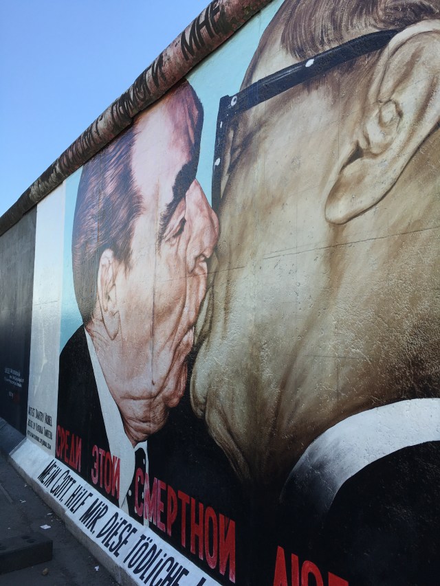 After the memorial, we walked all over the central part of the city and ended our afternoon visiting the Berlin Wall (at least the part the city kept up). This portion of the wall contains well-crafted graffiti on one side and a rotating art project on the other side. The art project at the moment are photos and quotes from Syrian refugees. While walking along the wall, I was reminded of the repercussions of war and the reality of what happens when other countries occupy already occupied areas. The Berlin Wall split the Russian occupied side of Germany and the Western-occupied part of Germany. The Russian side had automatic machine guns stationed, facing toward the city, ready to shoot down any East Berliner who desired to jump the wall. This and many other things resulted in tensions, eventually causing an uprising and eventual decree to bring down the wall.