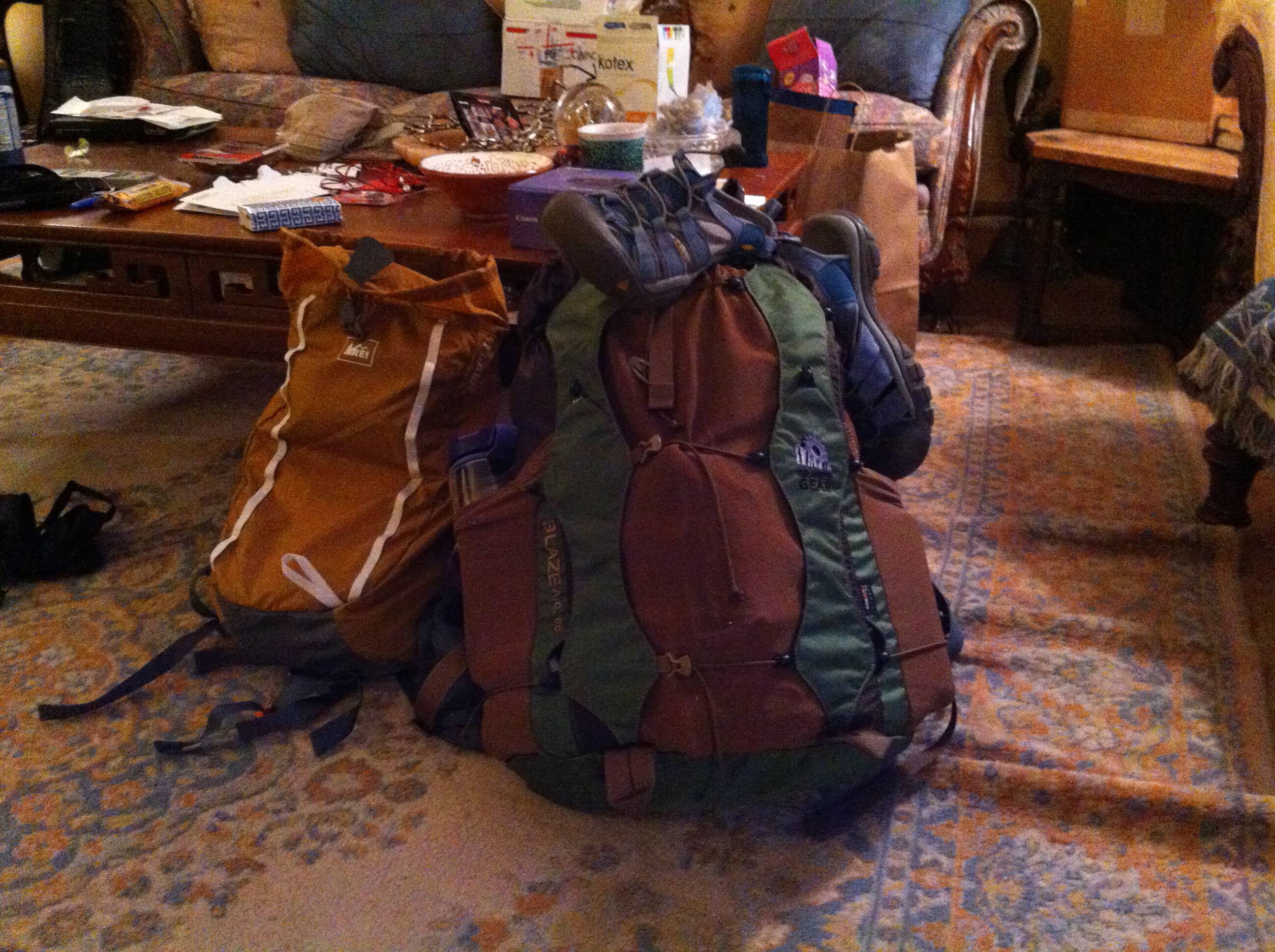 I weighed my Granite Gear pack and it’s about 16.5 pounds (Probably more around 15 pounds without Colleen’s presents) and my goal in filling it up only halfway is a success! Overall, I’m pleased with my final product. I did have to sacrifice nice things, like a computer, cute clothes, and other fun things, but I know it’ll be worth it in the end.