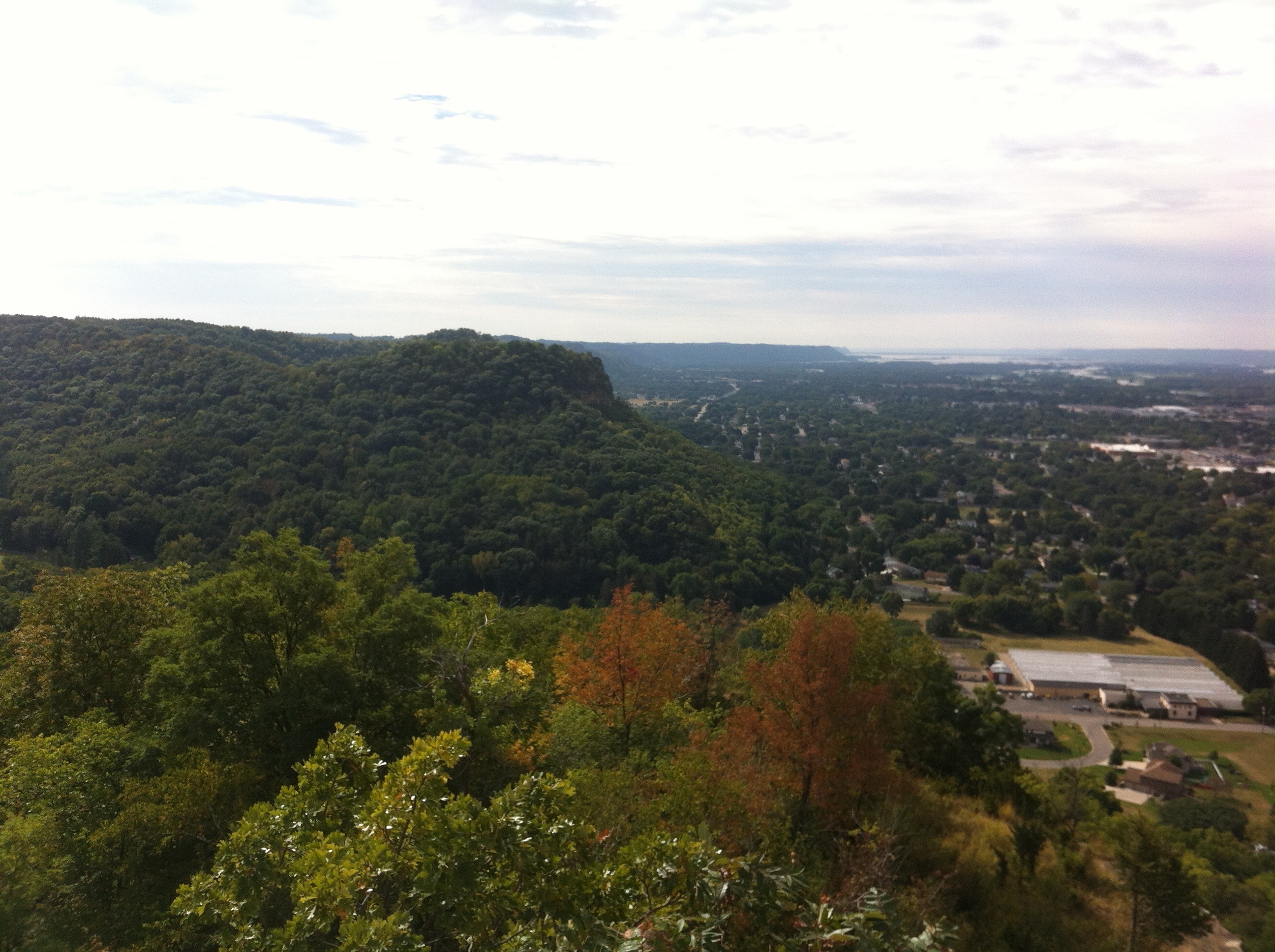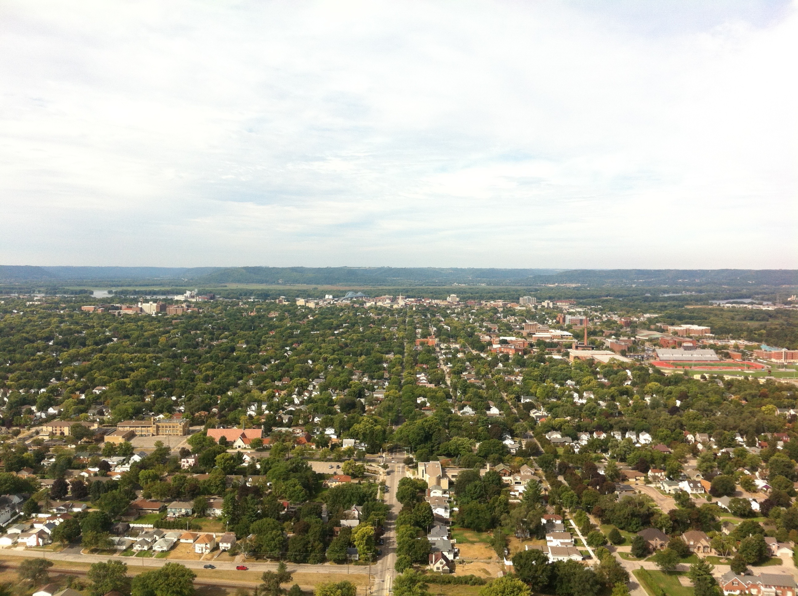 La Crosse, WI. You can see the Mississippi River and the cliffs in the distance.